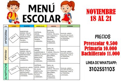 TIENDA ESCOLAR – MENÚ DEL 18 AL 21 DE NOVIEMBRE
