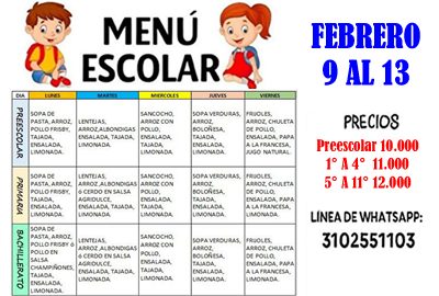 TIENDA ESCOLAR – MENÚ DEL 2 AL 6 DE FEBRERO