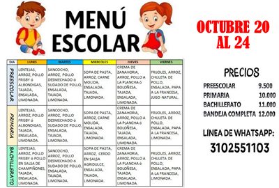 TIENDA ESCOLAR – MENÚ DEL 20 AL 24 DE OCTUBRE