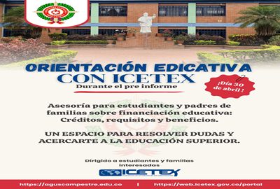 El próximo jueves 30 de abril, en el horario de las 6:45 a.m. a 9:00 a.m., contaremos con la visita de un asesor del ICETEX, quien brindará orientación a estudiantes y familiasLeer más…