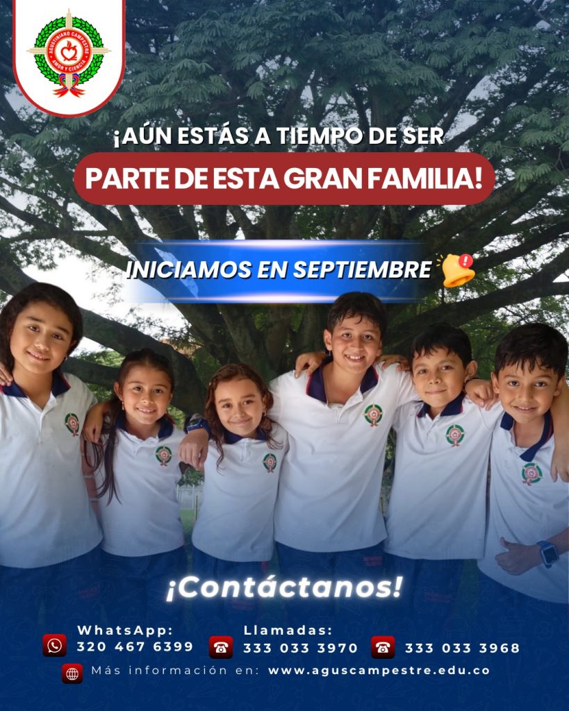 Contáctanos: Solo WhatsApp: 320 467 6399 – Solo llamadas: 333 033 3970 – 333 033 3968 – www.aguscampestre.edu.co