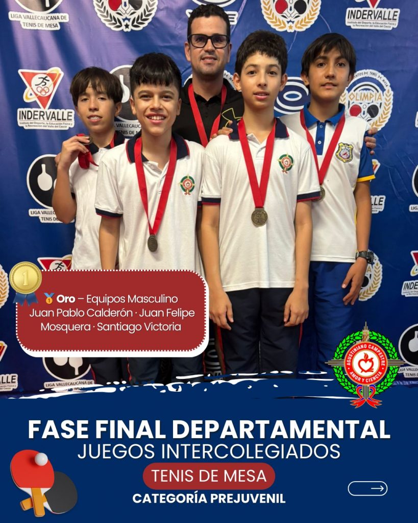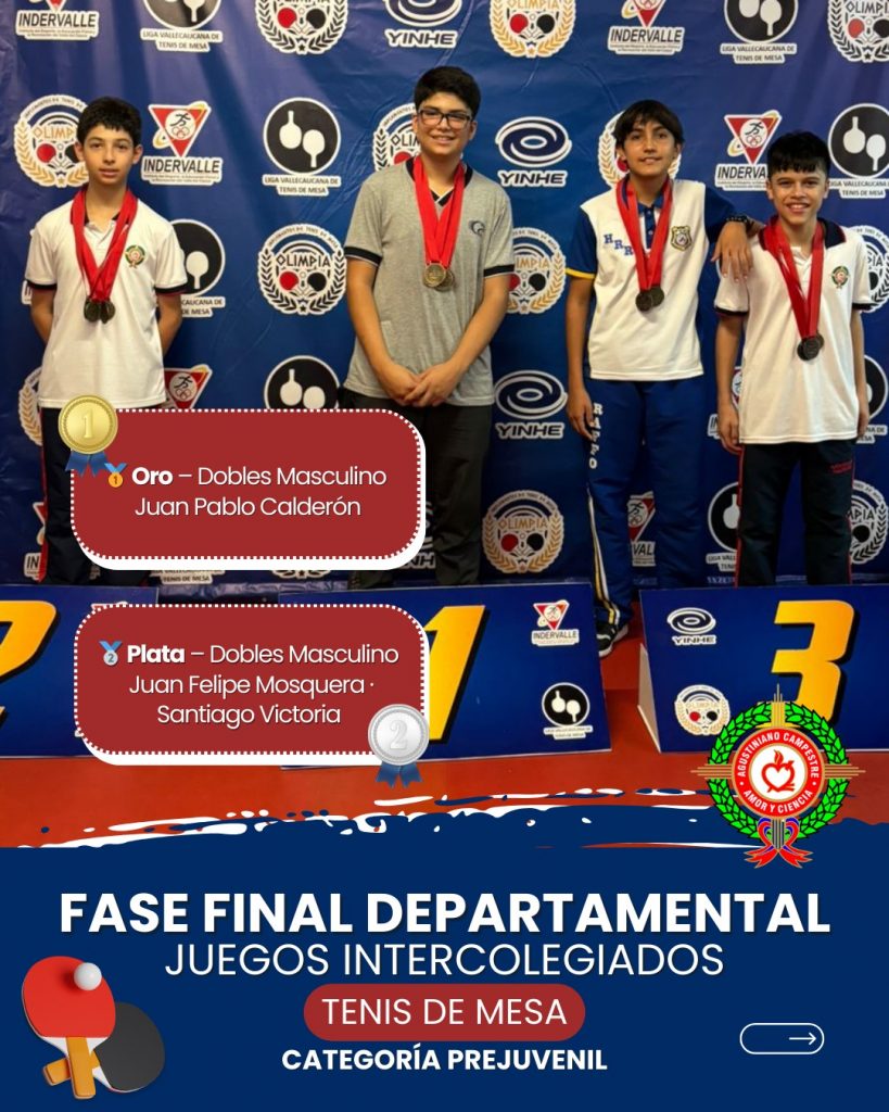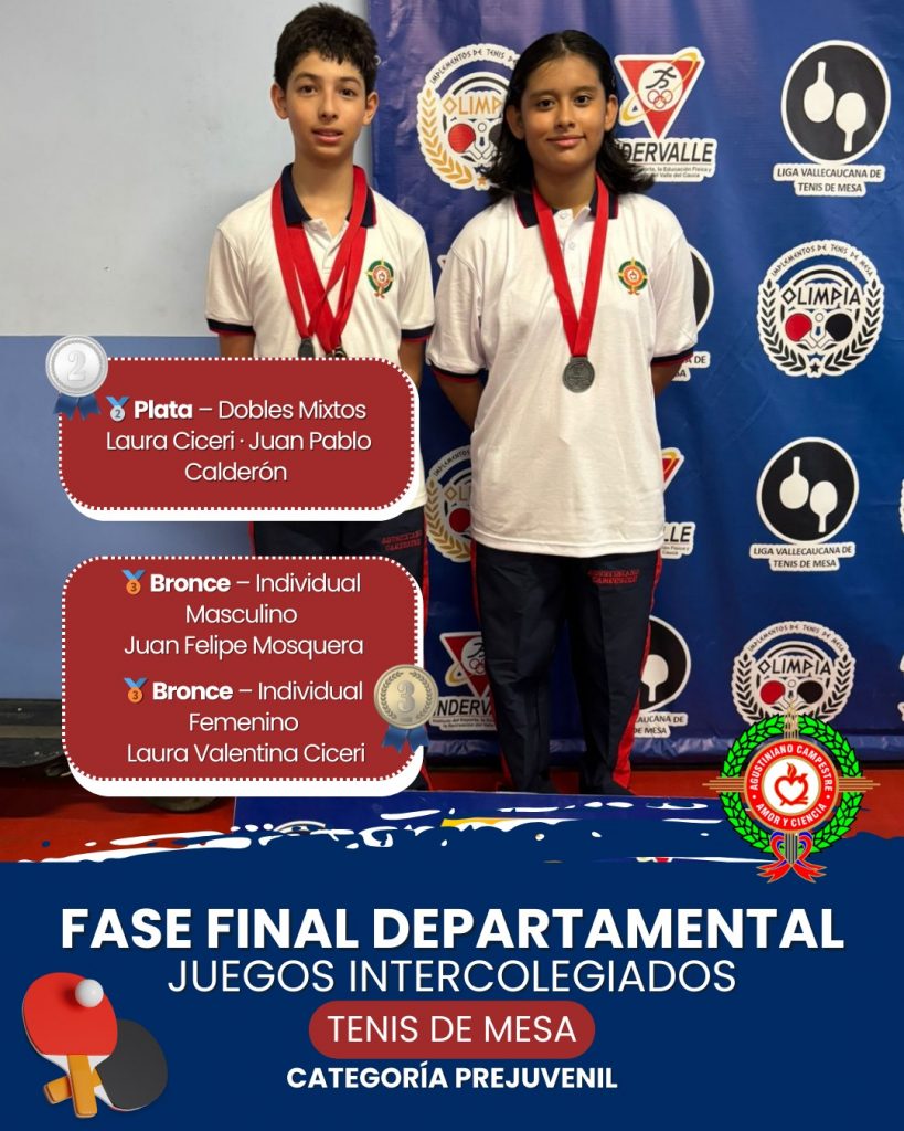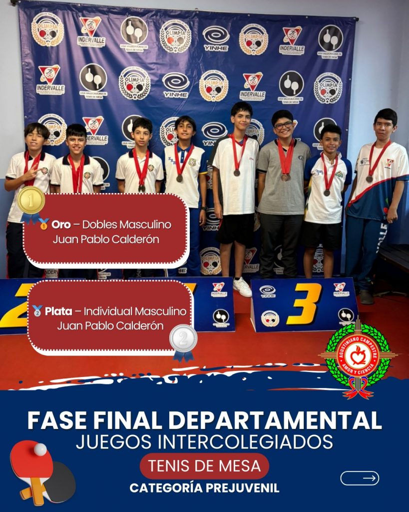 Nuestros estudiantes brillaron con disciplina, talento y pasión en la Fase Final Departamental de Tenis de Mesa – Categoría Prejuvenil, dejando en alto el nombre del Colegio Agustiniano Campestre.