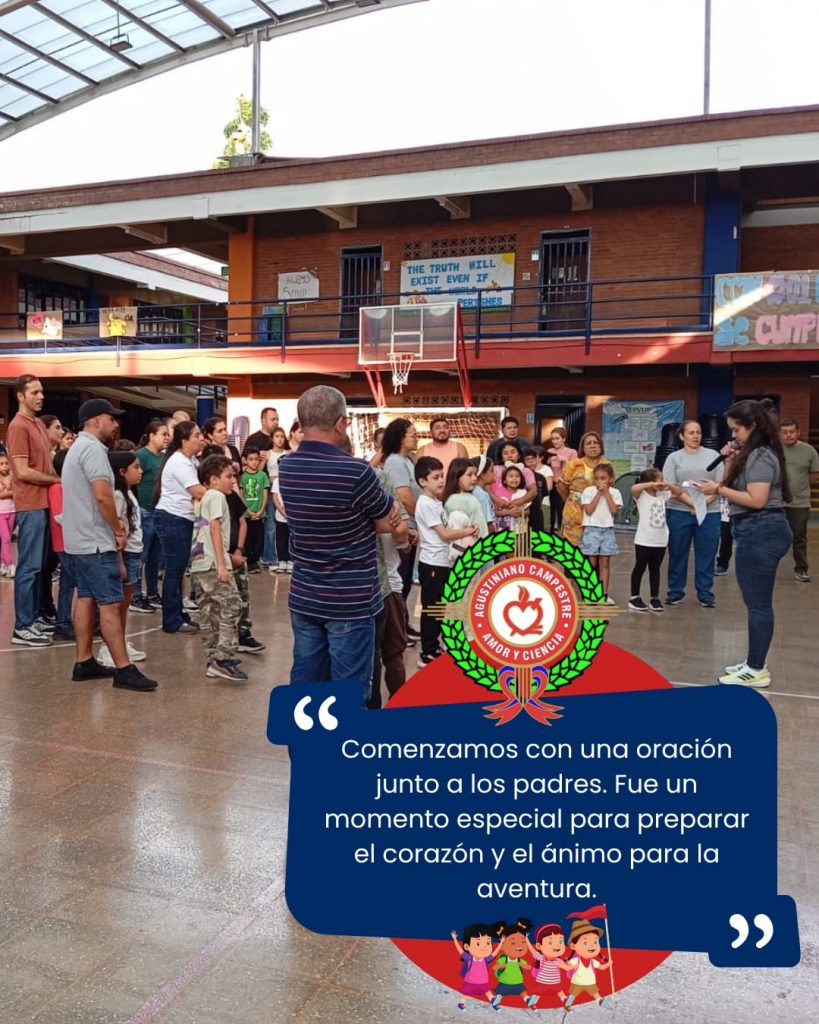 ¡Así comenzó nuestra gran aventura de campamento! Iniciamos la jornada con una oración junto a las familias, un momento especial para preparar el corazón y el ánimo. Luego, con mucho cariño, los padres ayudaron a sus hijos a armar sus cartas, dejando mensajes que los acompañarán durante toda la experiencia. Los estudiantes recibieron las instrucciones generales y descubrieron todas las actividades que vivirían durante el campamento.