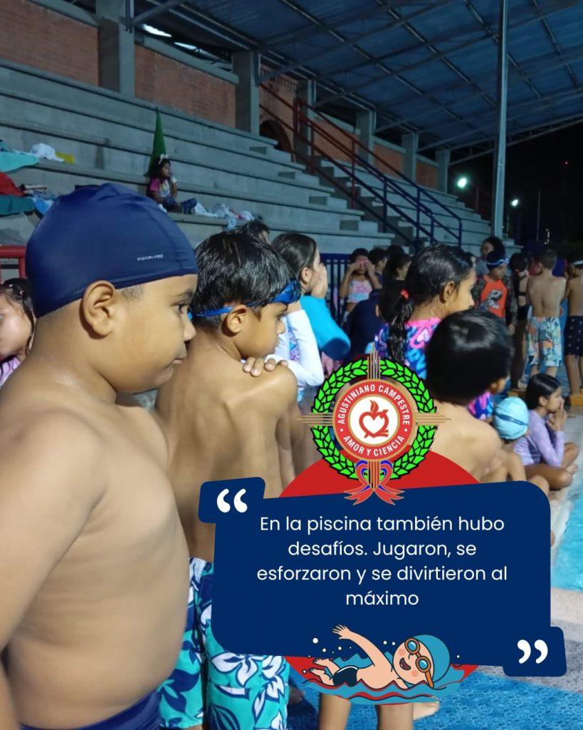 La primera fue un emocionante circuito de desafíos en equipo, donde se movieron, rieron y superaron pequeños retos físicos. En la piscina, la diversión continuó con juegos y desafíos que sacaron lo mejor de cada uno: esfuerzo, alegría y compañerismo. Y para cerrar el día, un espacio de meditación y reflexión les permitió conectar consigo mismos y con lo vivido.