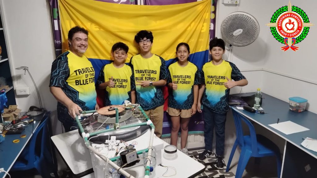Este año, por segunda vez consecutiva, Colombia fue representada por el equipo “Travelers of the Blue Forest”, conformado por niños y jóvenes de instituciones educativas públicas y privadas, al que pertenece nuestro estudiante de séptimo grado, Juan Alejandro Monserrate Córdoba. El grupo participó de manera virtual con su robot JUNK.