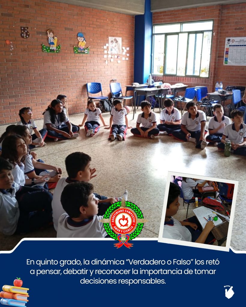 En quinto grado, la dinámica “Verdadero o Falso” los retó a pensar, debatir y reconocer la importancia de tomar decisiones responsables.