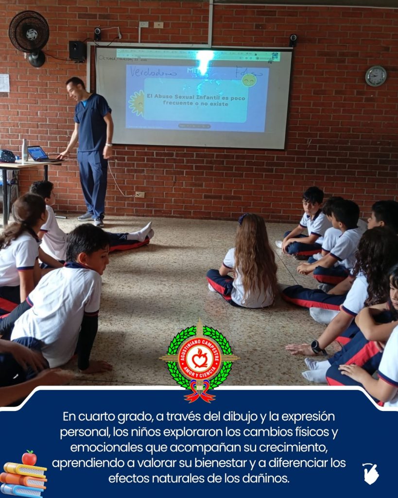 En cuarto grado, a través del dibujo y la expresión personal, los niños exploraron los cambios físicos y emocionales que acompañan su crecimiento, aprendiendo a valorar su bienestar y a diferenciar los efectos naturales de los dañinos.