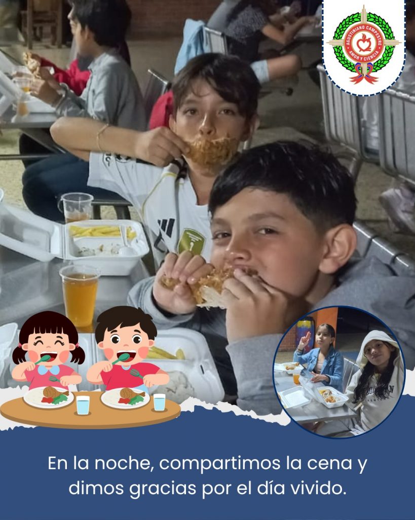 Cena y agradecimiento: compartimos un momento especial para dar gracias por el día vivido.