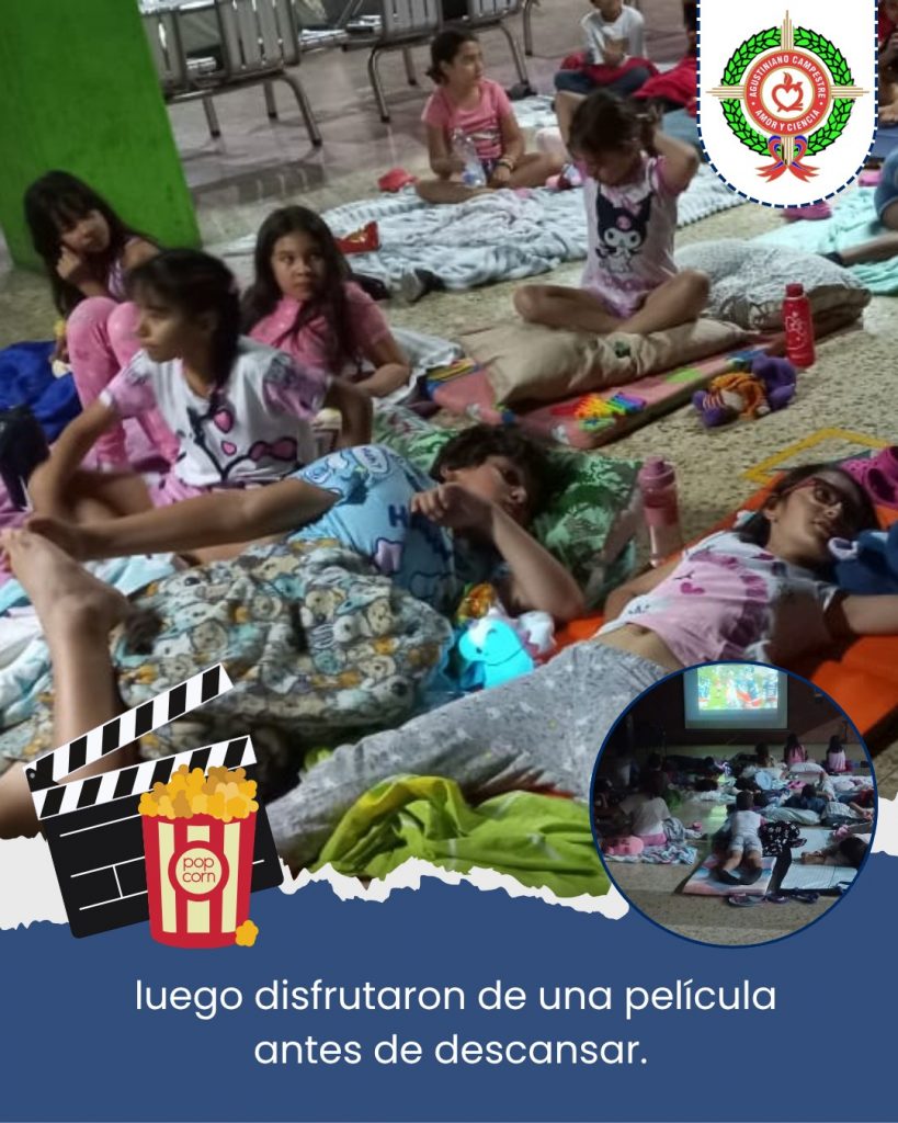 Meditación y película: después de cenar, tuvieron un espacio para relajarse y conectar consigo mismos, seguido de una divertida noche de película.