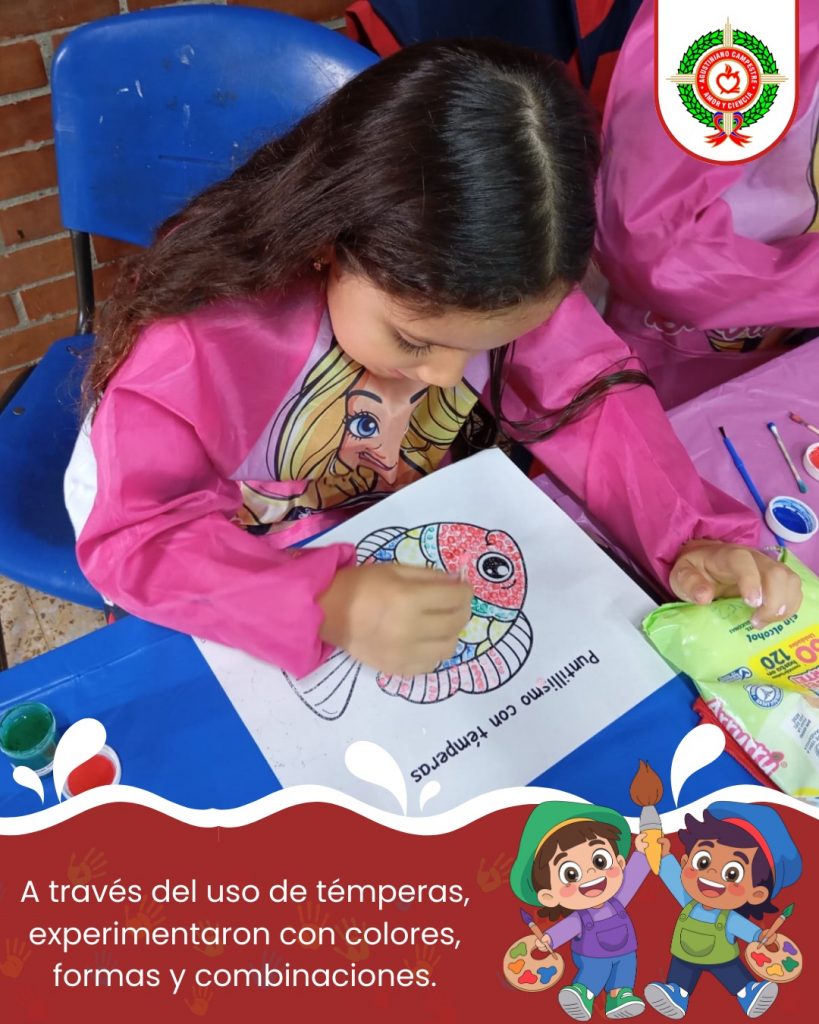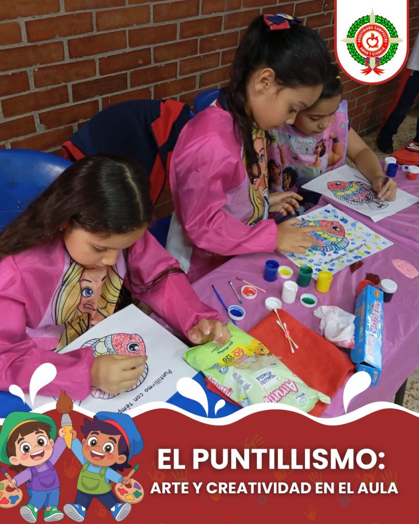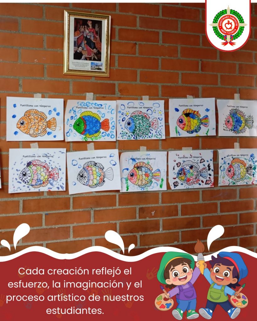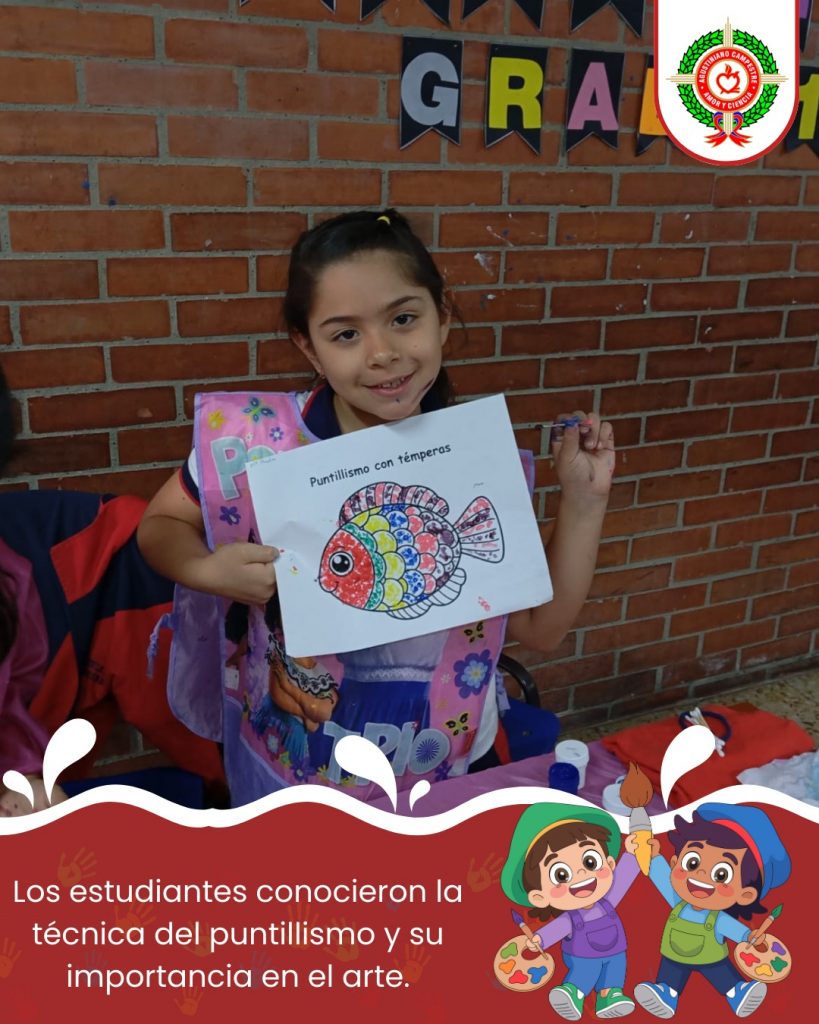 Nuestros estudiantes exploraron la técnica del puntillismo a través del uso de témperas, una experiencia artística que les permitió experimentar con el color, la forma y la composición.