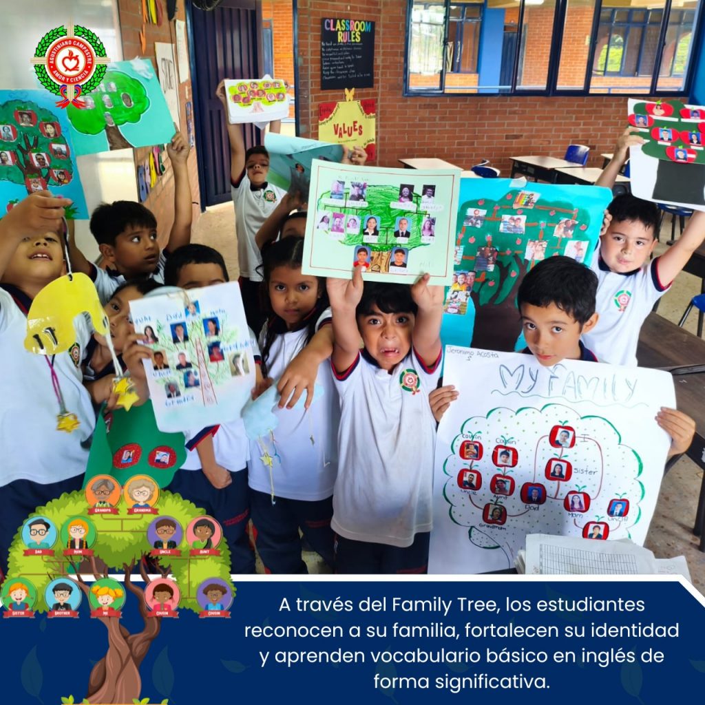 A través de esta actividad, los estudiantes de grado primero identifican a los miembros de su familia mientras fortalecen su identidad y aprenden vocabulario de manera significativa.