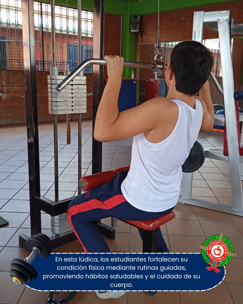 La actividad física es fundamental en el desarrollo integral de nuestros estudiantes. En la escuela de formación lúdica de gimnasio, se busca que nuestros(as) estudiantes fortalezcan su condición física a través de rutinas guiadas y adaptadas a su edad, mejorando resistencia, coordinación y postura corporal. Además, este espacio promueve la disciplina, la constancia y el compromiso con hábitos de vida saludable. Cada entrenamiento es una oportunidad para formar carácter, confianza y bienestar.