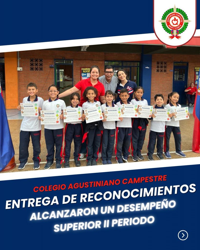 En el Colegio Agustiniano celebramos con orgullo a nuestros niños, niñas y adolescentes que alcanzaron un desempeño superior durante el II periodo académico. Este logro refleja su disciplina, compromiso y constancia, junto al acompañamiento de sus familias y docentes.